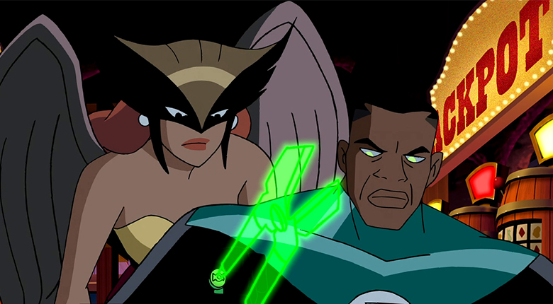 Colleagues and lovers, Hawkgirl is hesitant to admit her feelings for Green Lantern (Phil LaMarr) with the concern of balancing their relationship with their Justice League duties. Nevertheless, Green Lantern professes his love for her, seeing her for who she really is under the superhero persona. Reassuringly removing her anxieties, John Stewart simply sees them; ‘a man and a woman’